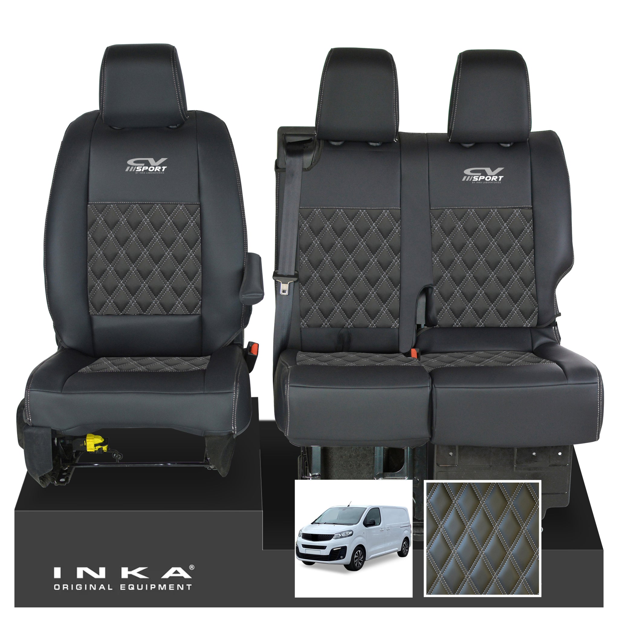 Fiat Scudo INKA Front 1+2 Bentley Diamond Quilt Leatherette Tailored Seat Covers Black MY22 To Present
