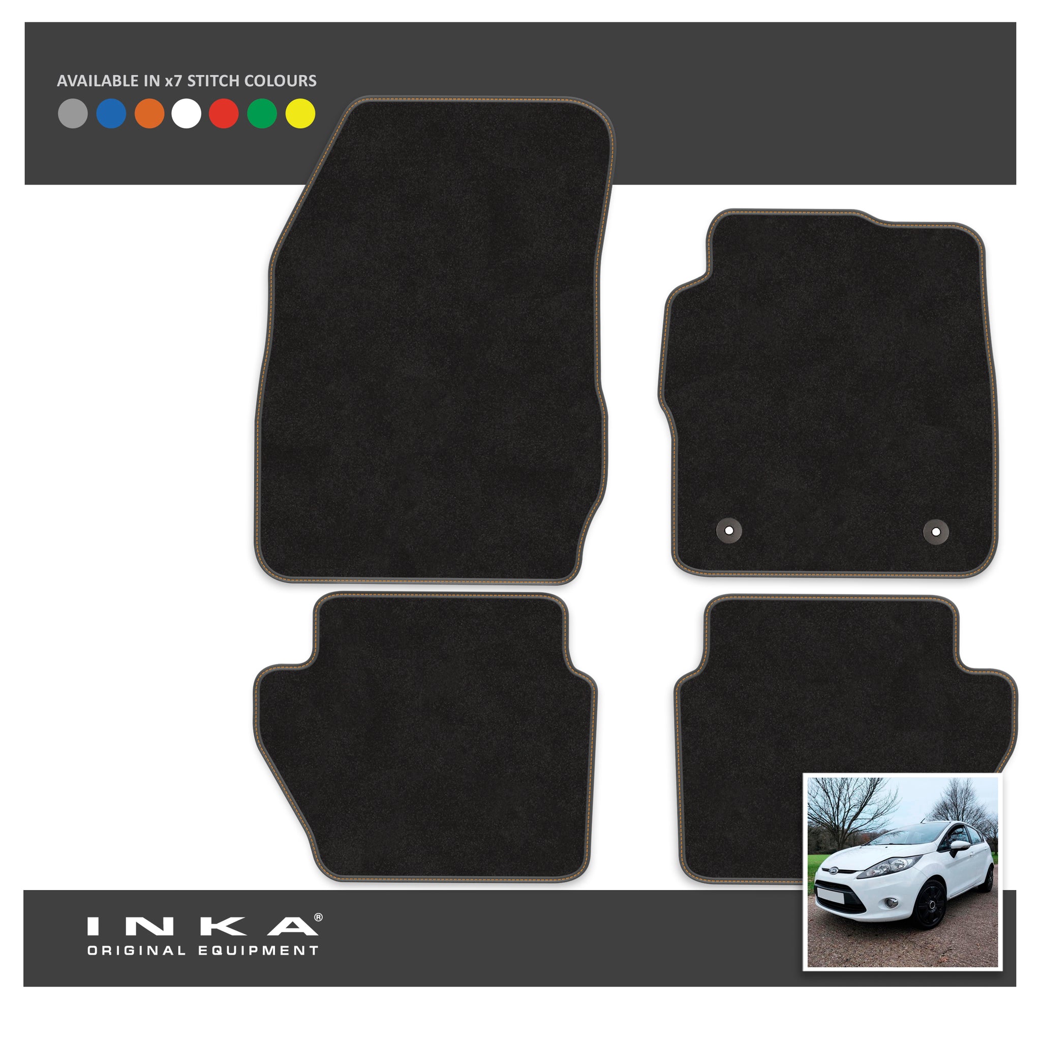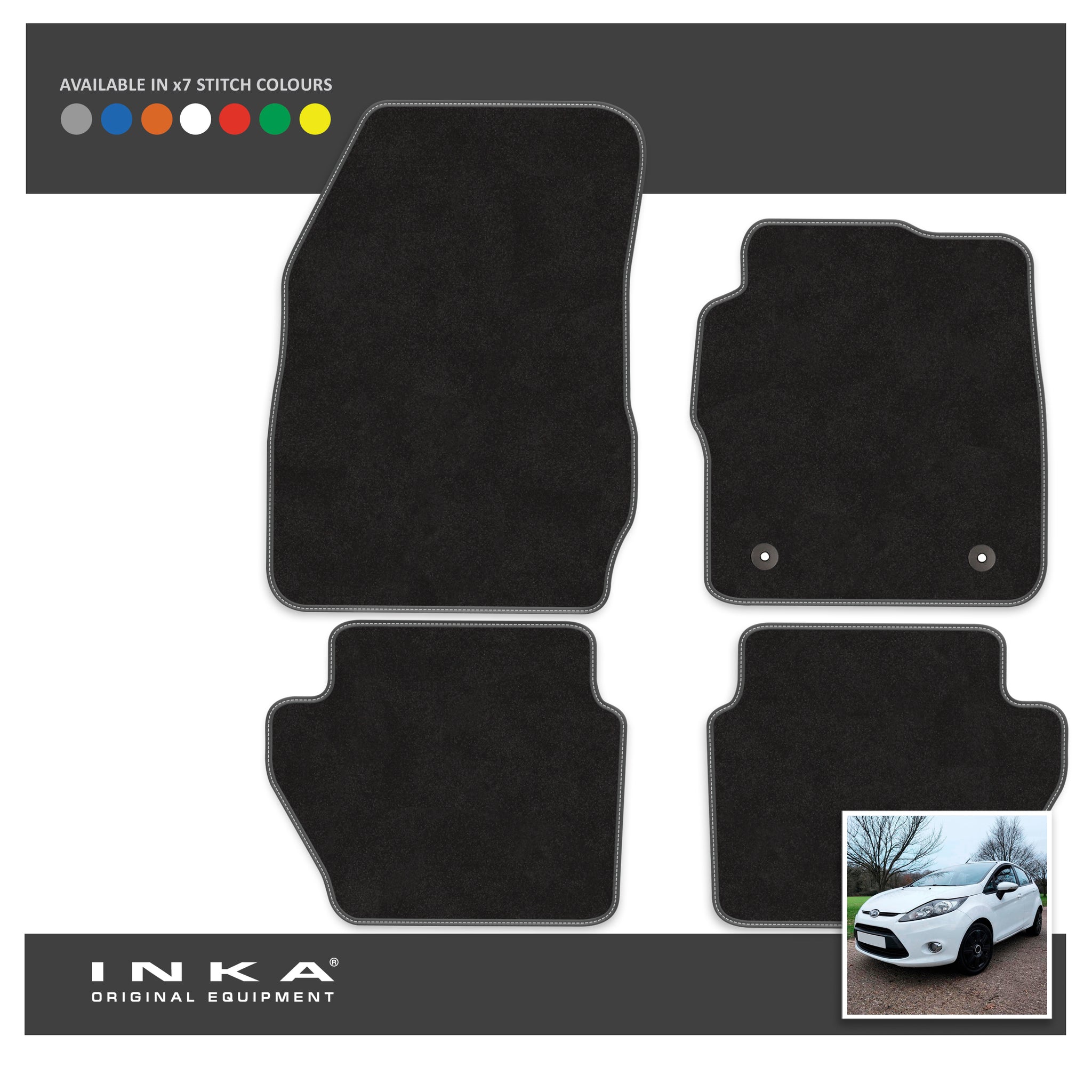 Ford Fiesta MK7 Front & Rear Premium Tailored Carpet Mat Set with 7x Stitch Colours Fits MY11 to MY17