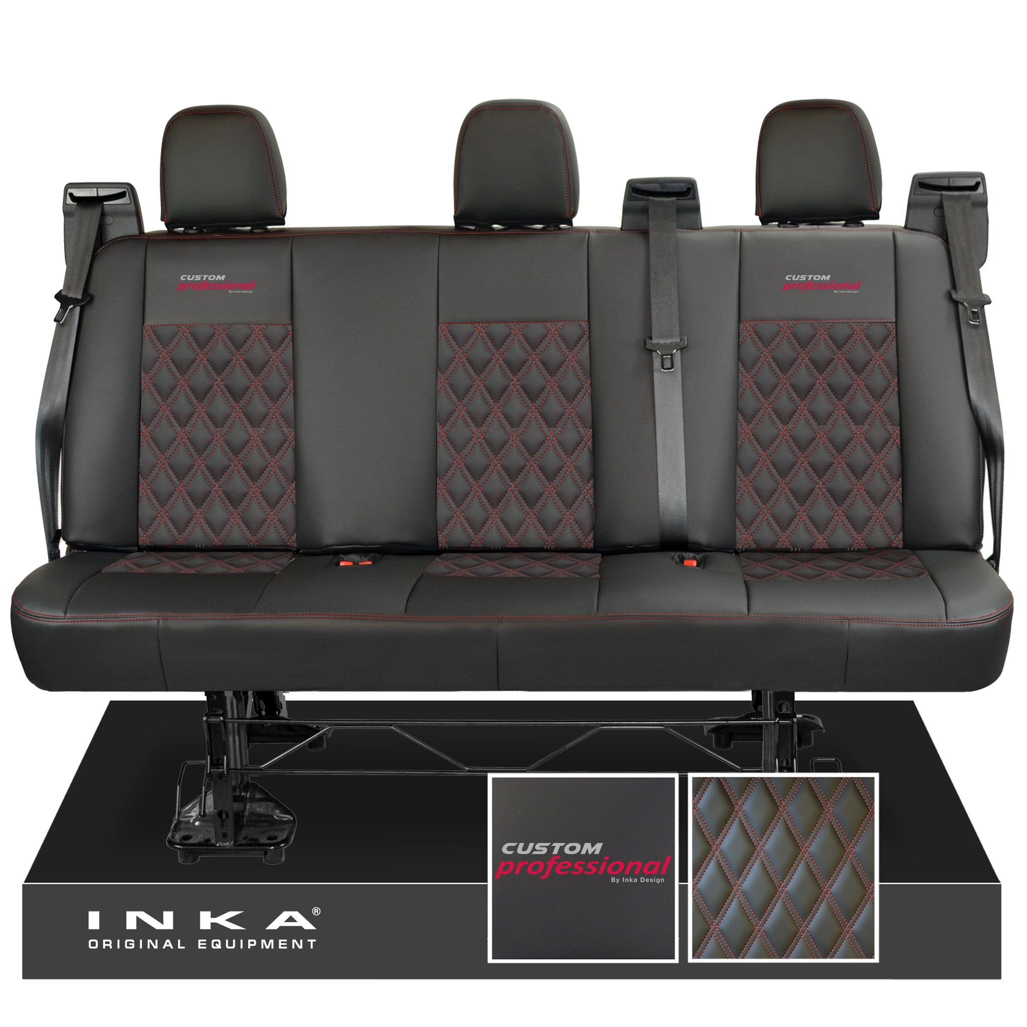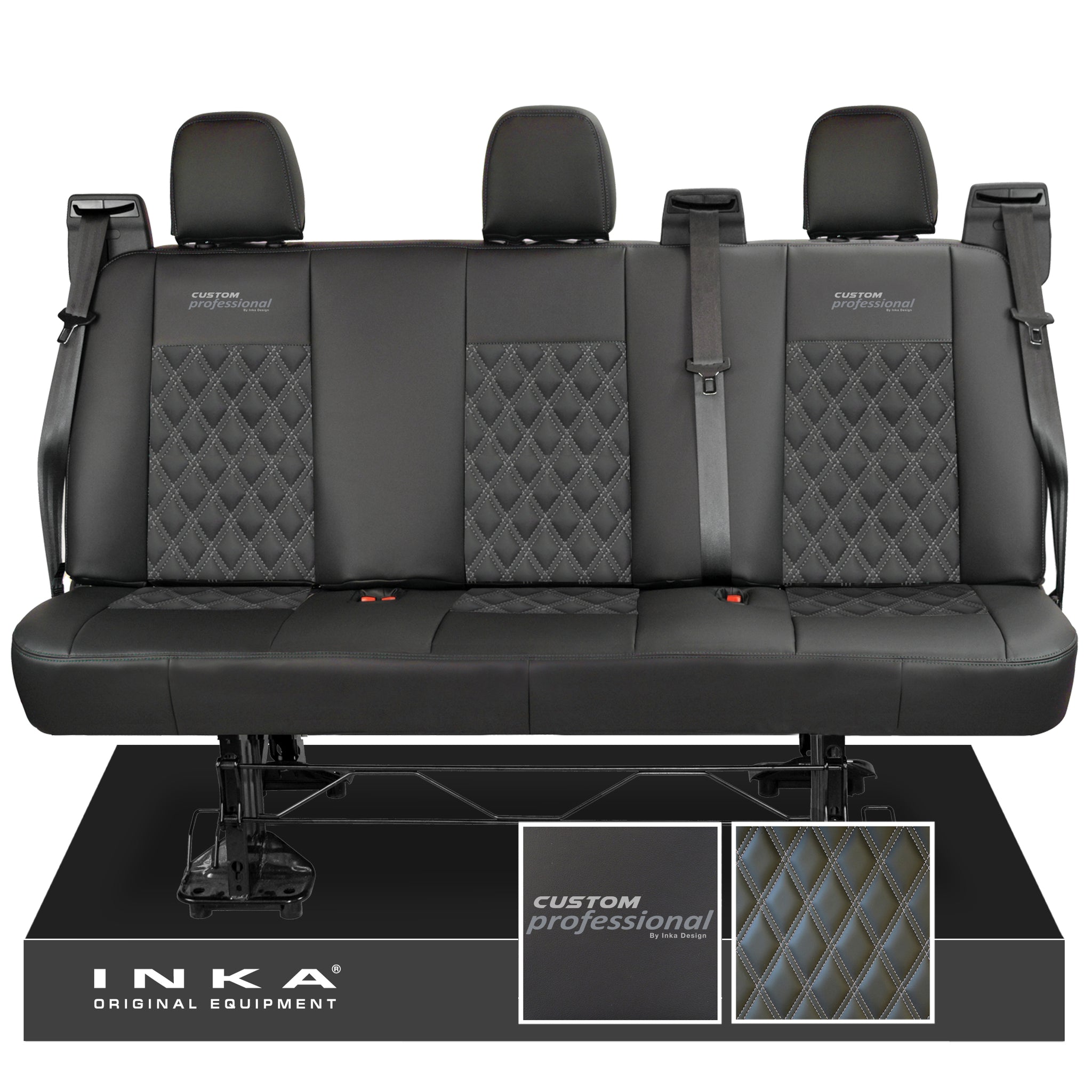 Ford Transit Custom INKA Custom Professional Rear Triple Tailored Leatherette Bentley Diamond Quilt Seat Covers Black MY12-25