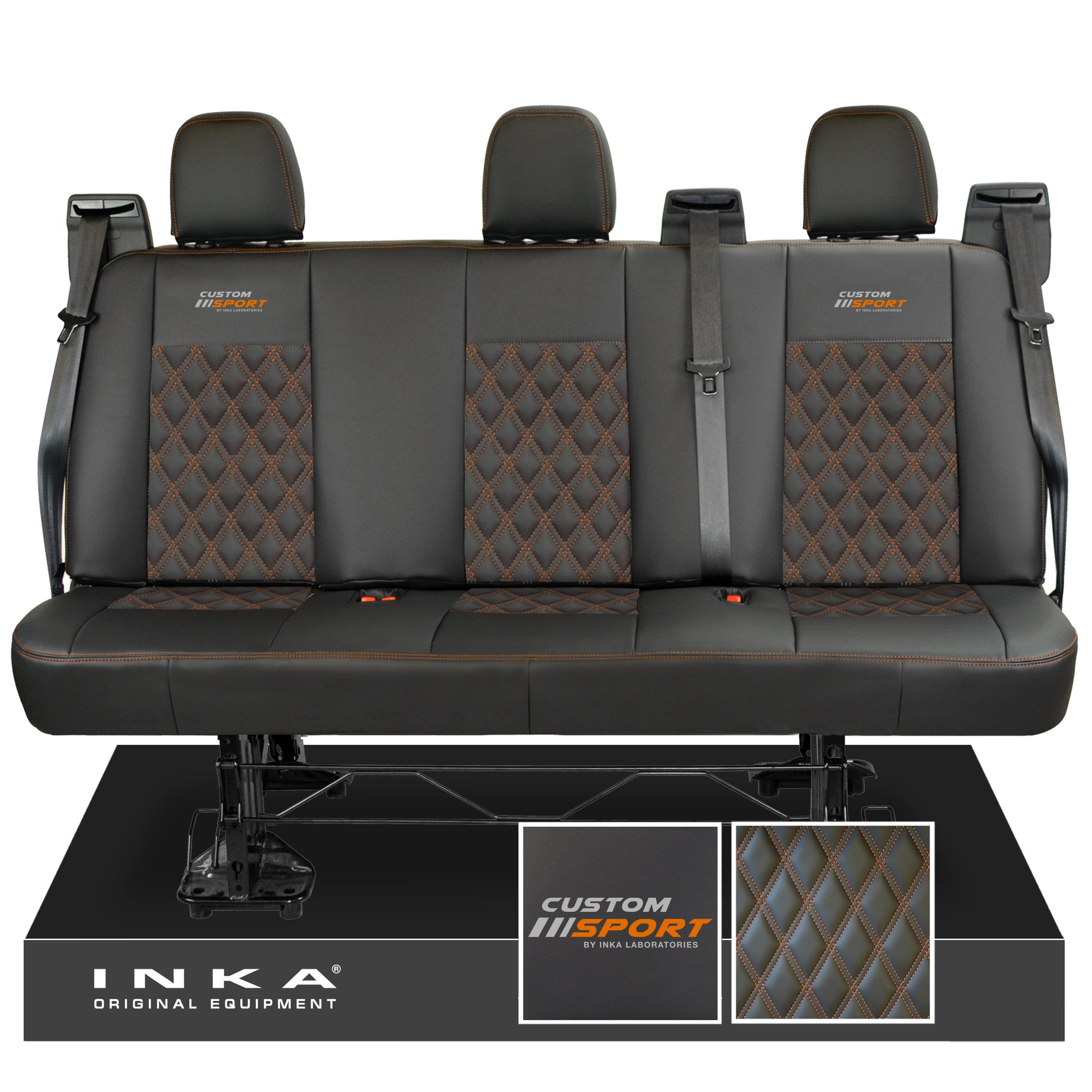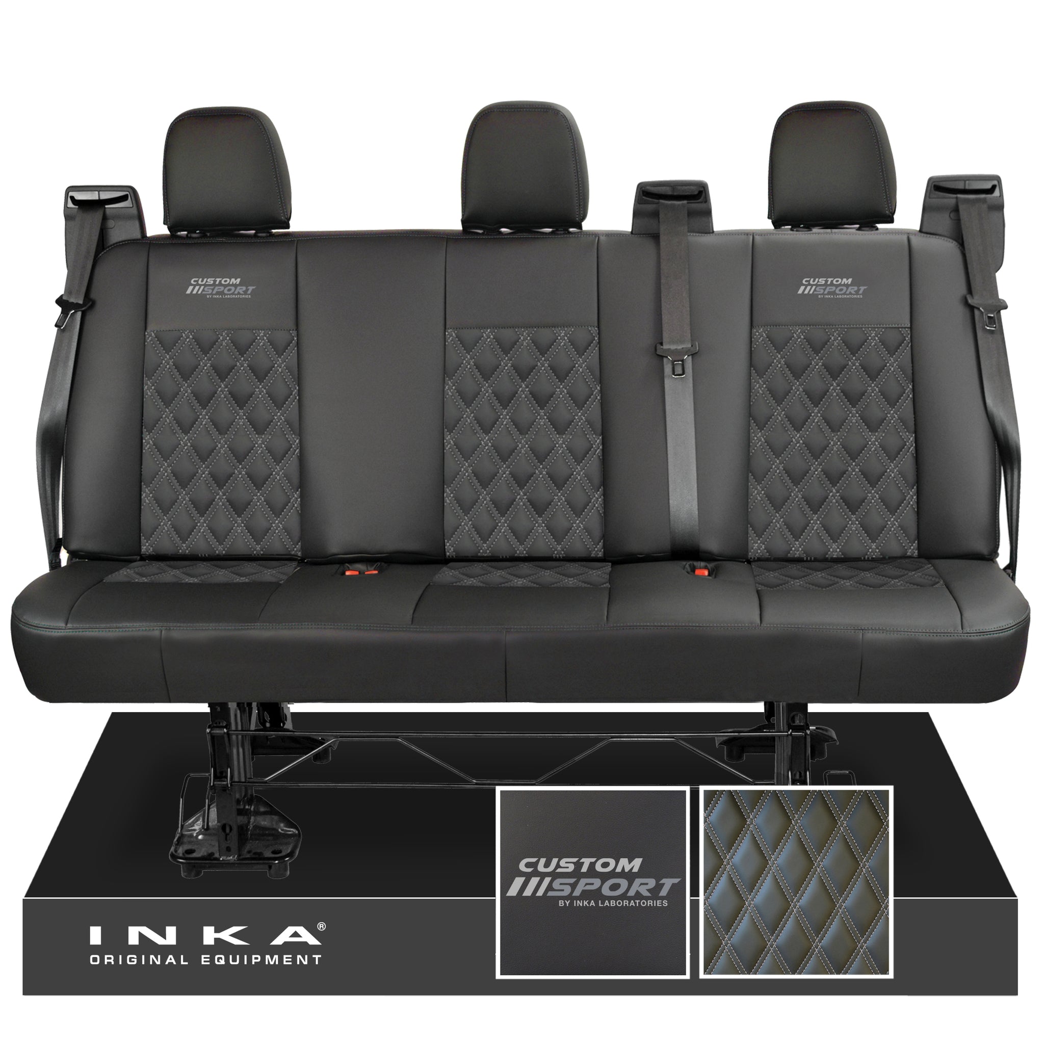 Ford Transit Custom INKA Custom Sport Rear Triple Tailored Leatherette Bentley Diamond Quilt Seat Covers Black MY12-25