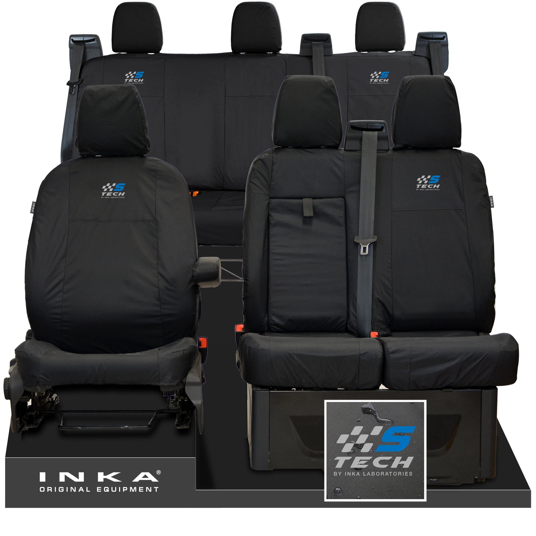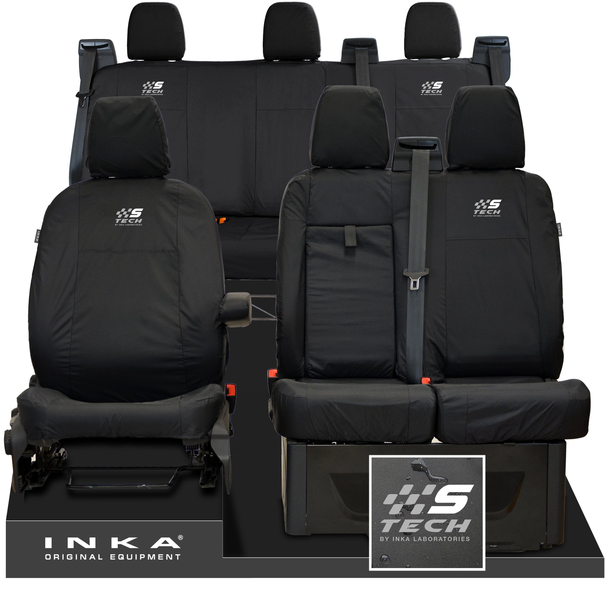 Ford Transit Custom INKA Front & Rear Set Tailored Waterproof Seat Covers Black