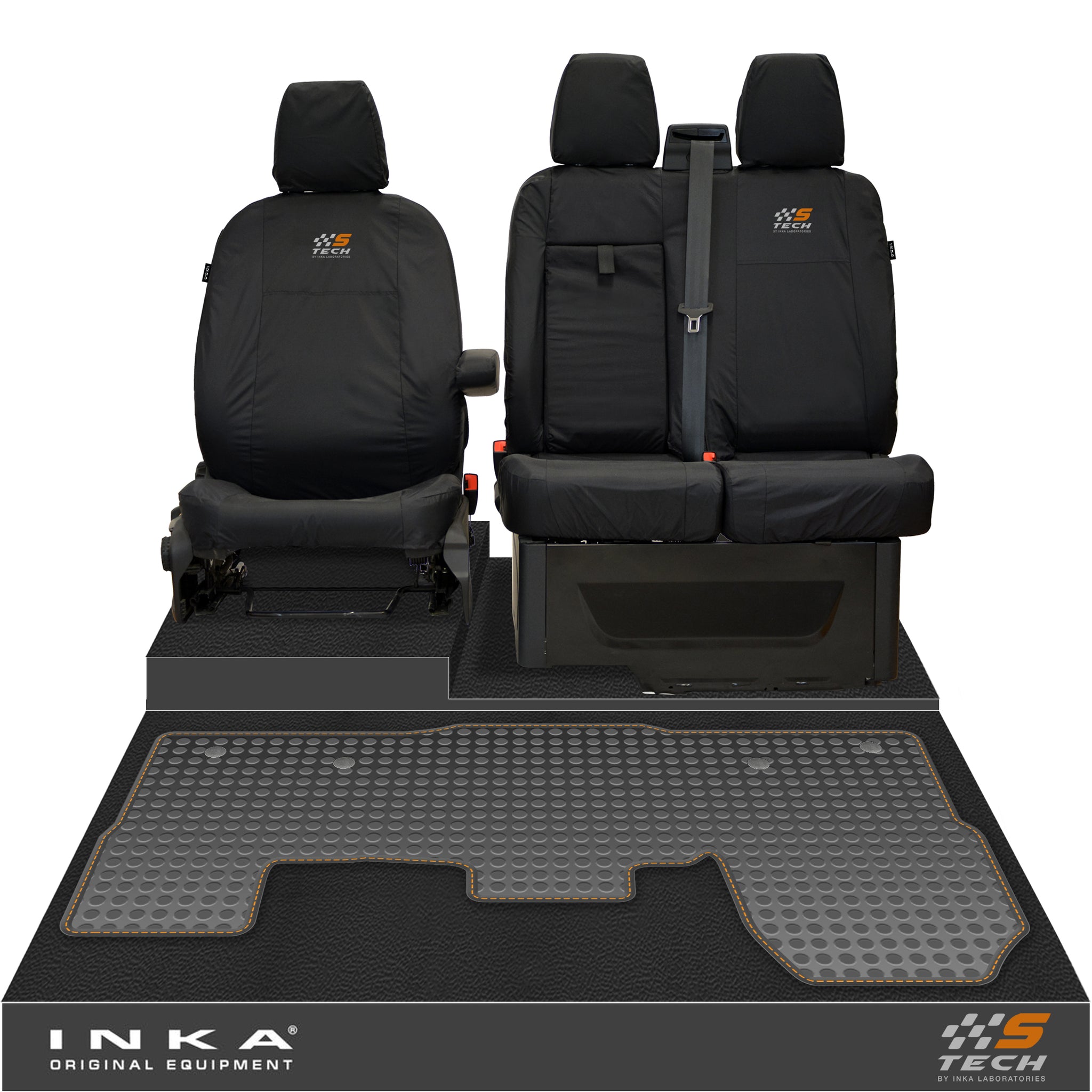 Ford Transit MK8/MK9 INKA Front 1+2 Tailored Waterproof Seat Covers & Tailored Rubber Mat Black MY-2014 Onwards (Choice of 7 Colours)