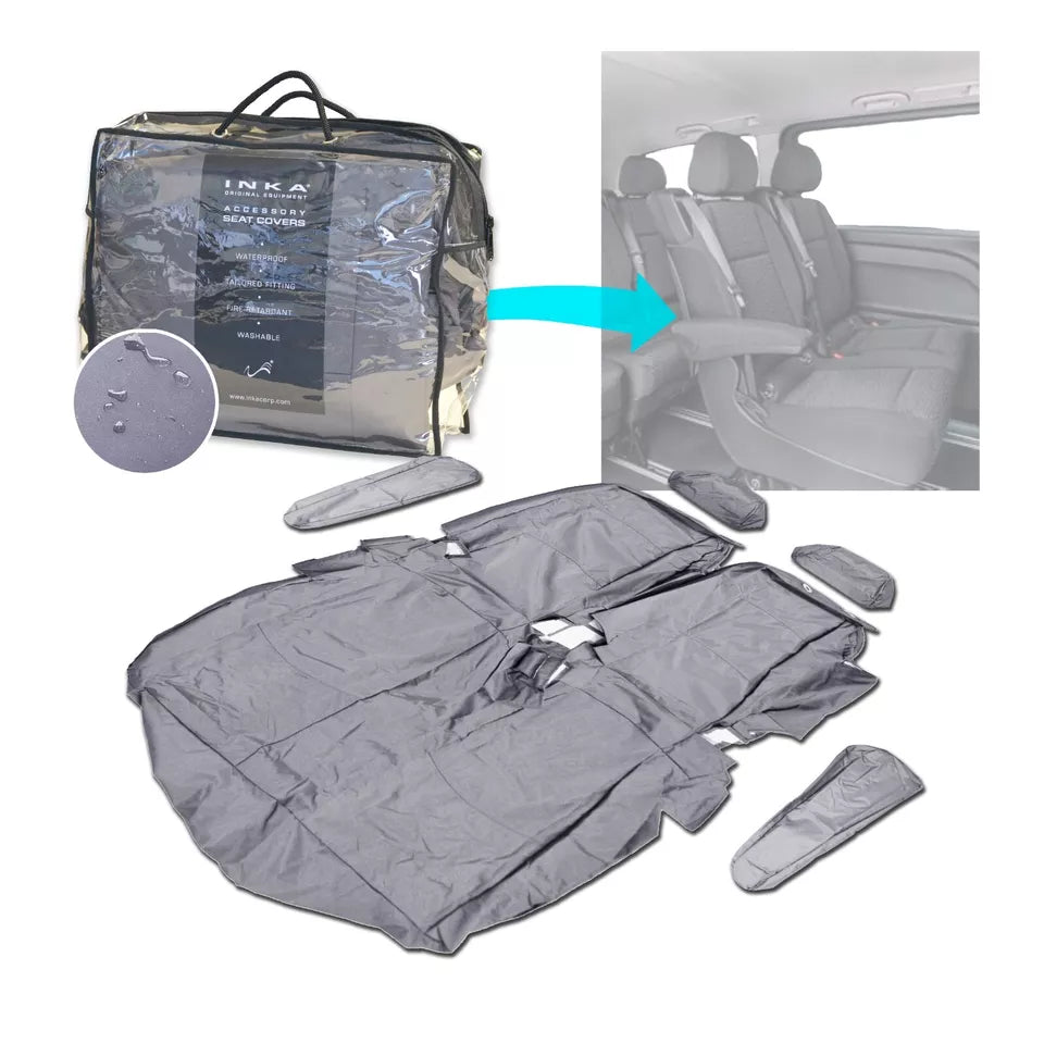 2nd & 3rd Row Row Comfort Pack Double waterproof Seat Cover INKA seat with 2x standard headrest & armrest covers.