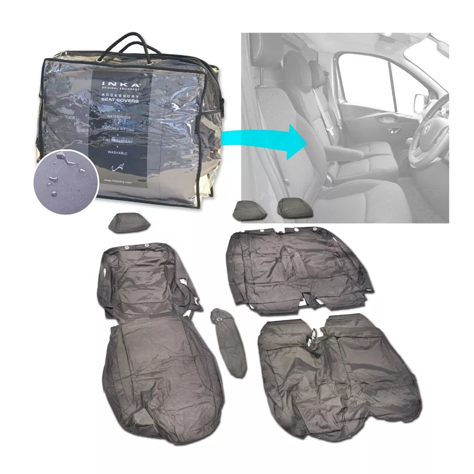Nissan Primastar Front 1+2 Fully Tailored Waterproof Seat Covers Grey MY 22+