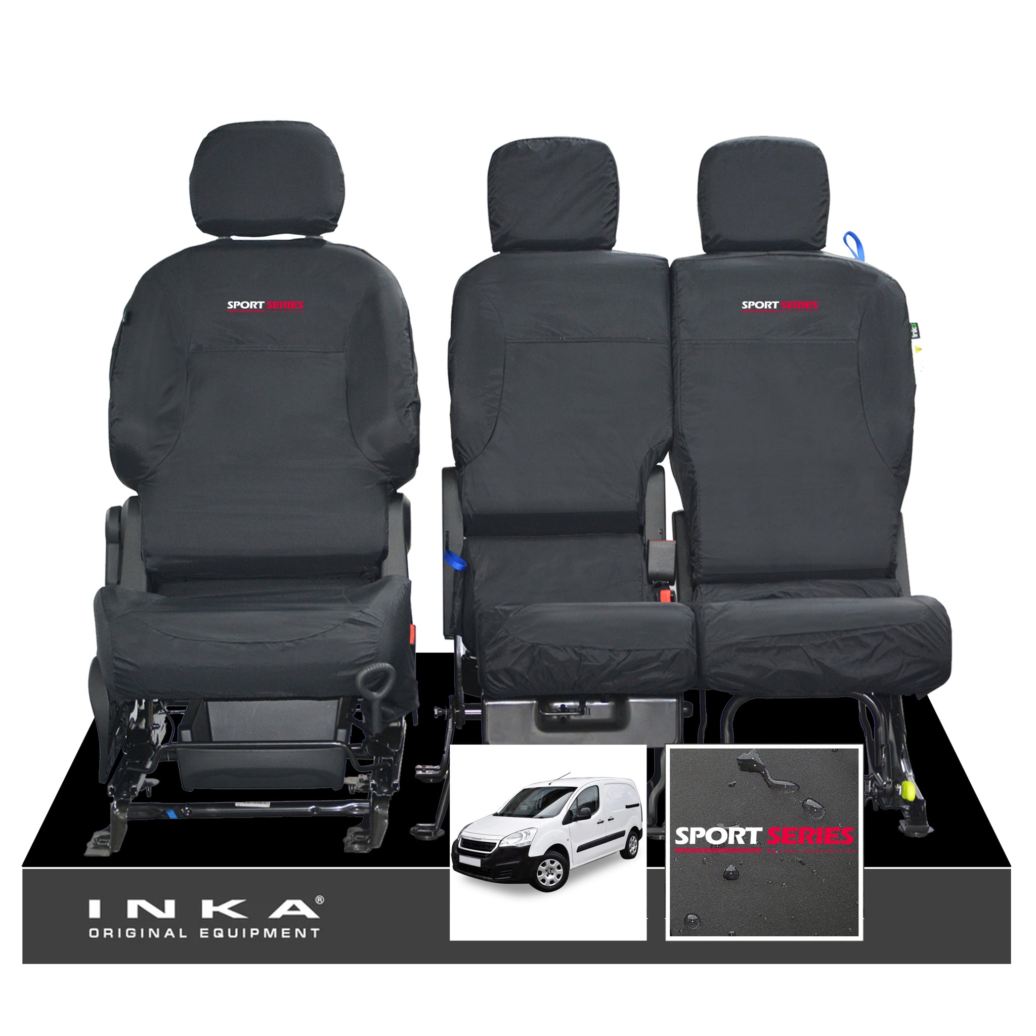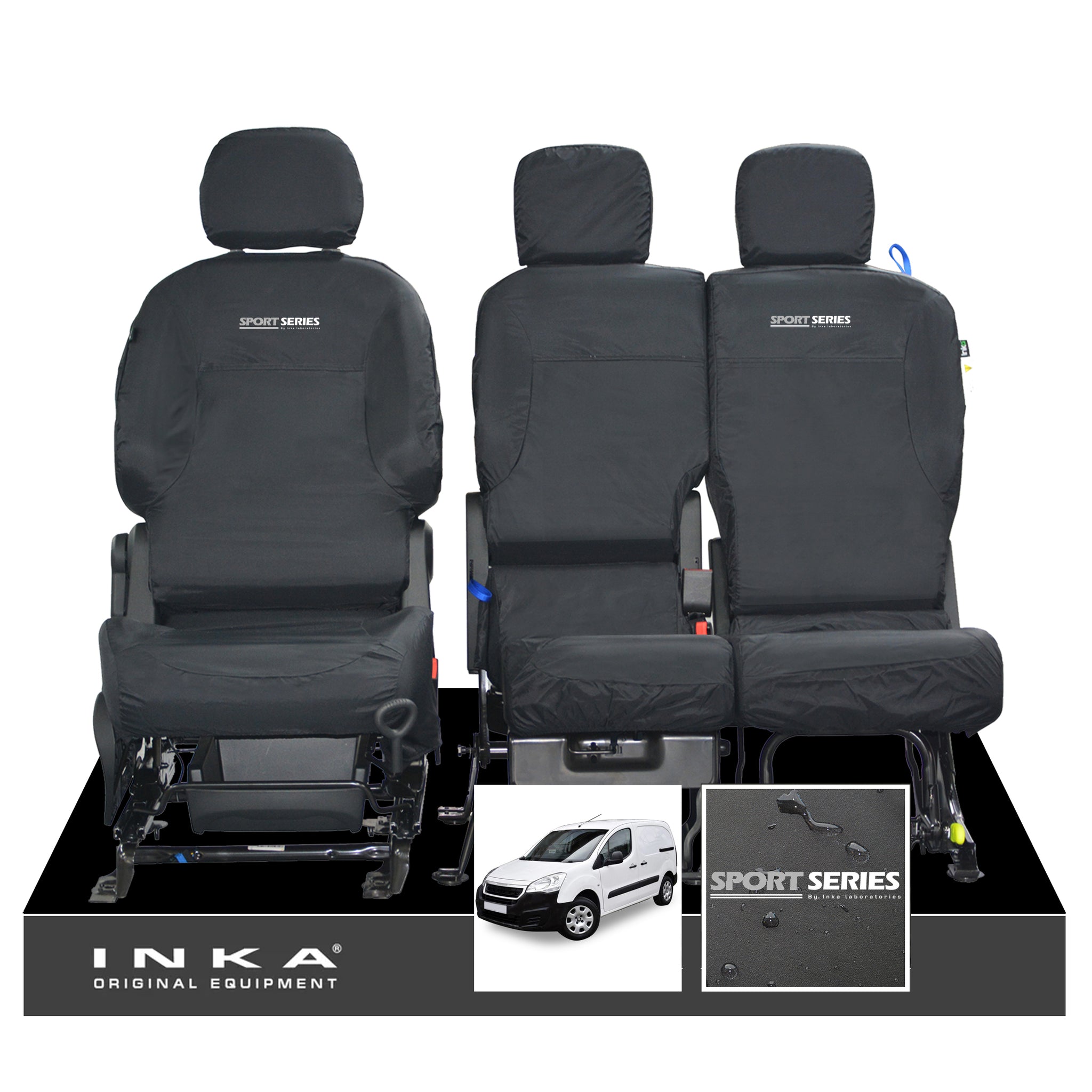 Peugeot Partner MK2 Front Inka Fully Tailored Waterproof Seat Covers Black MY08-17