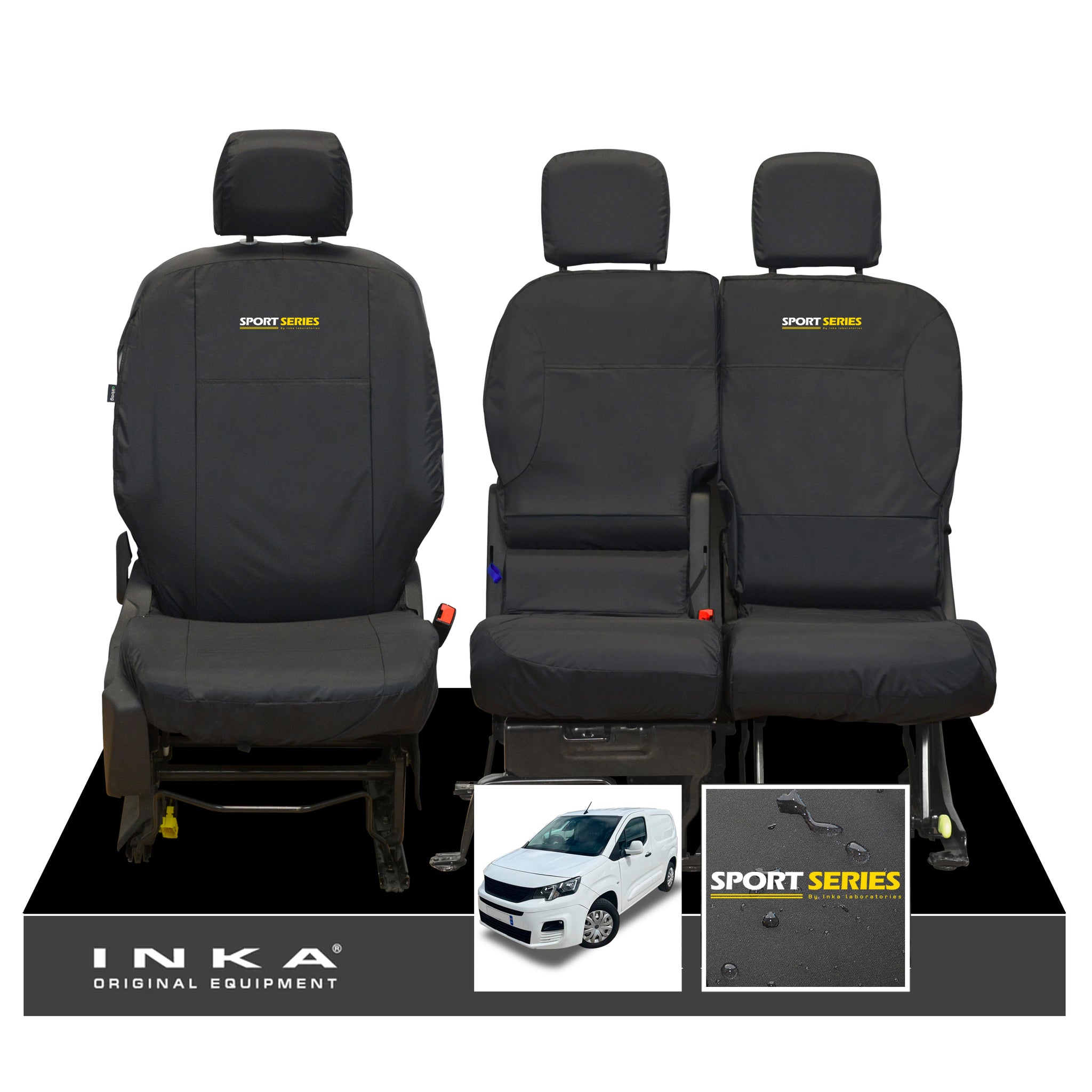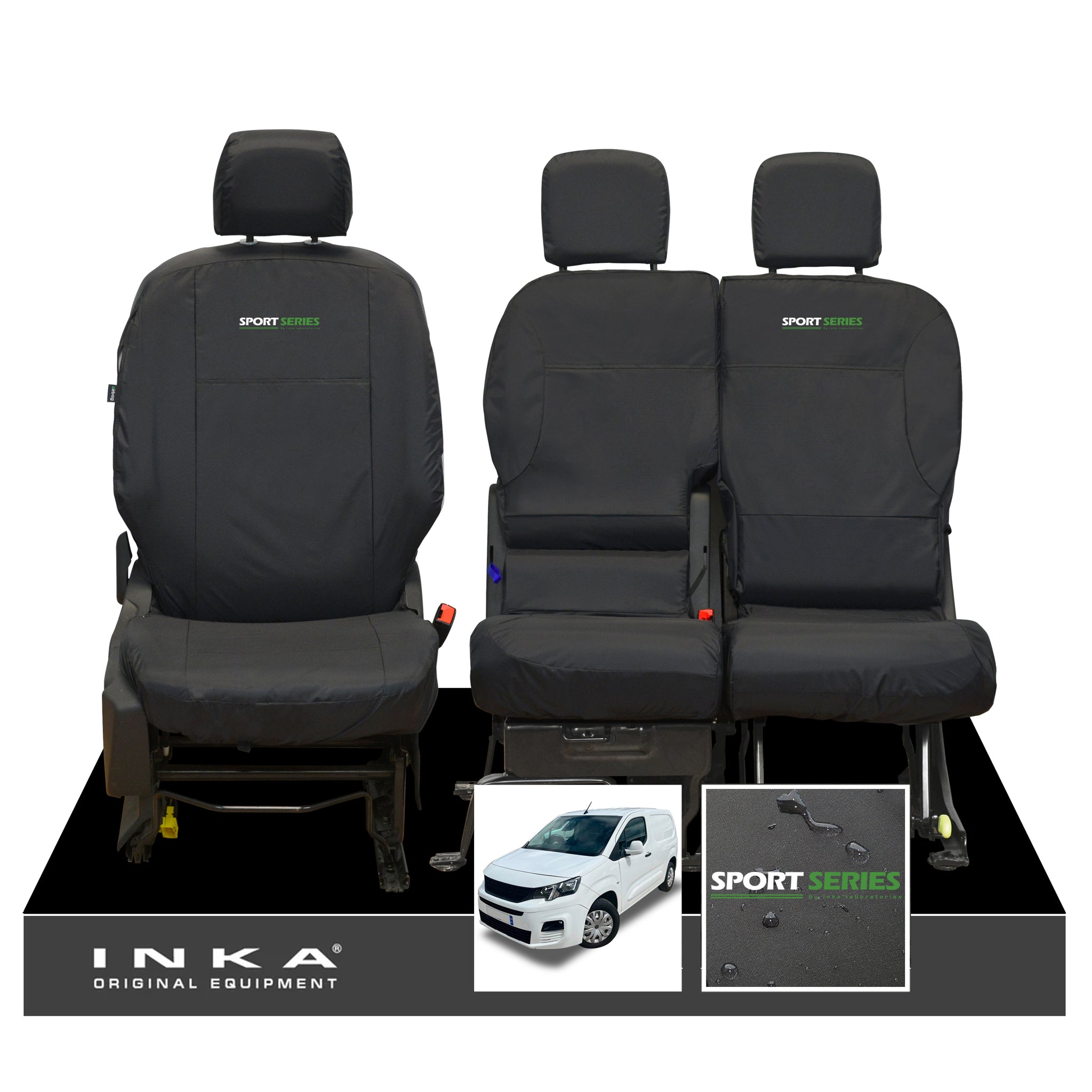 Peugeot Partner MK3 Front Inka Fully Tailored Waterproof Seat Covers Black MY2018 Onwards