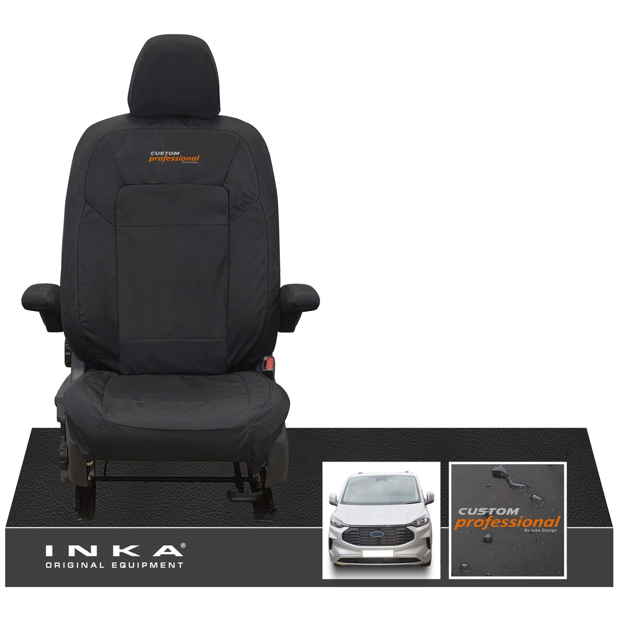 : This Item Can Be returnedThe All New Ford Transit Custom INKA Front Single Driver Tailored Waterproof Seat Cover Black MK2 MY-2024+ With Embroidered Logo [Choice of 7 Colours]