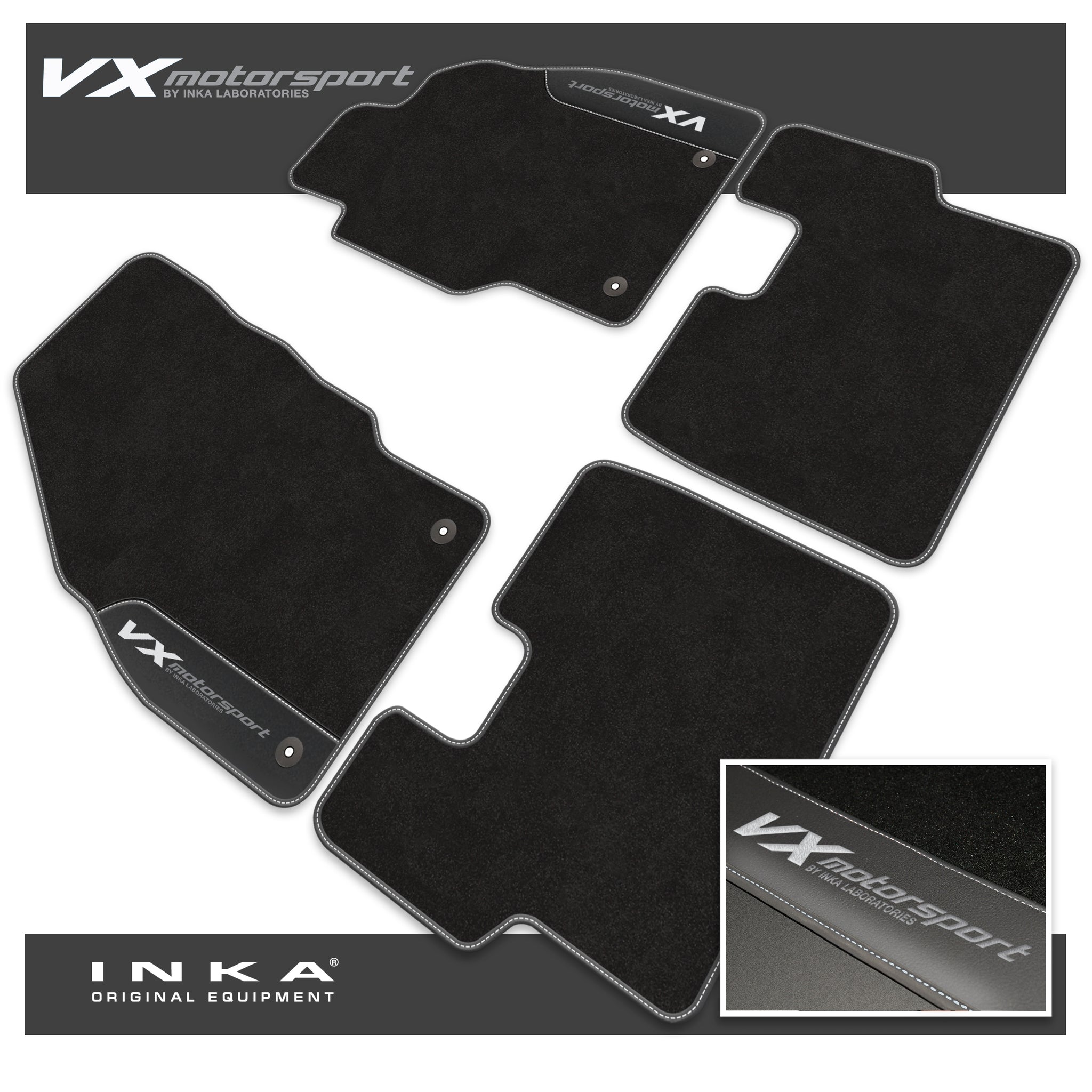 : This Item Can Be returnedVauxhall Corsa D - MY2007-2014 Tailored Car Mat Set (Front & Rear 4pcs) In OEM grade carpet pile with leatherette inserts and piping in contrast stitching With VX MOTOSPORT EMB
