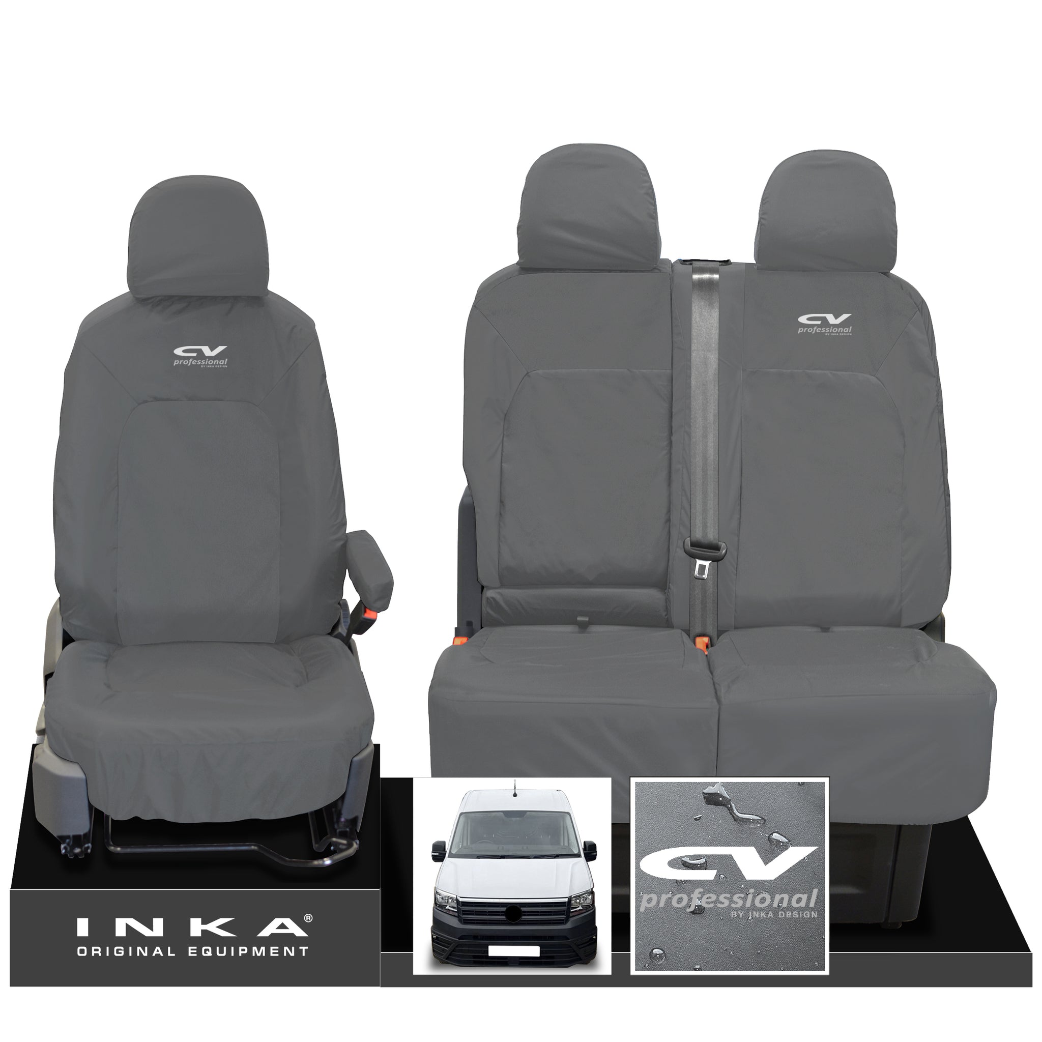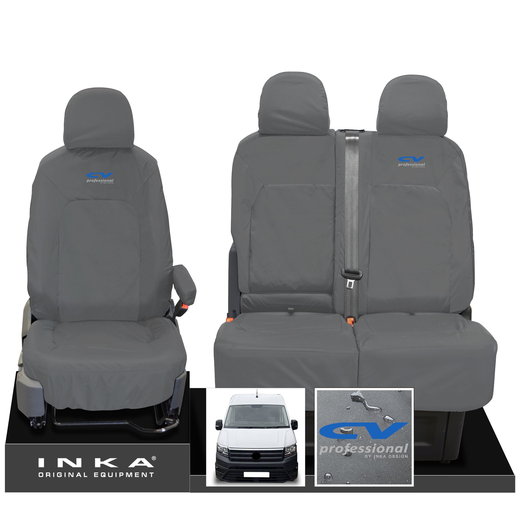 VW Crafter MK2 INKA Front Set 1+2 Tailored Waterproof Seat Covers Grey MY-2017 Onwards [Choice of 7 Colours]