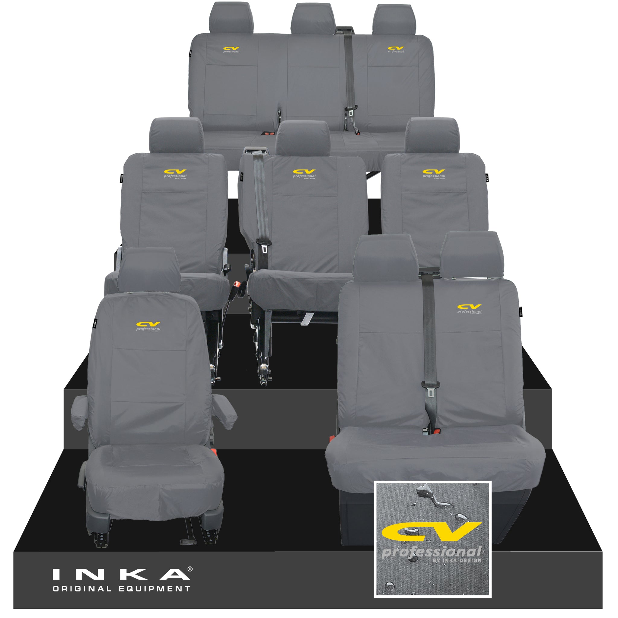 VW Transporter Shuttle T6.1,T6 Front 1+2, 2nd Row 1+1+1 & Rear Triple INKA Fully Tailored Waterproof Seat Covers MY-15-23 [Choice of 7 Colours]