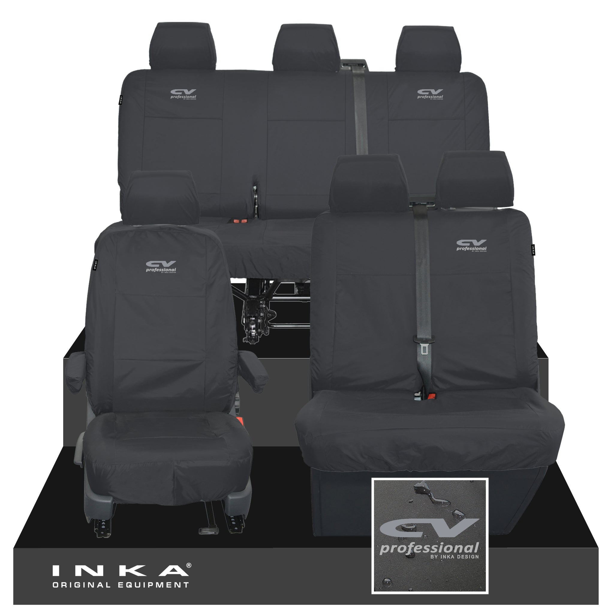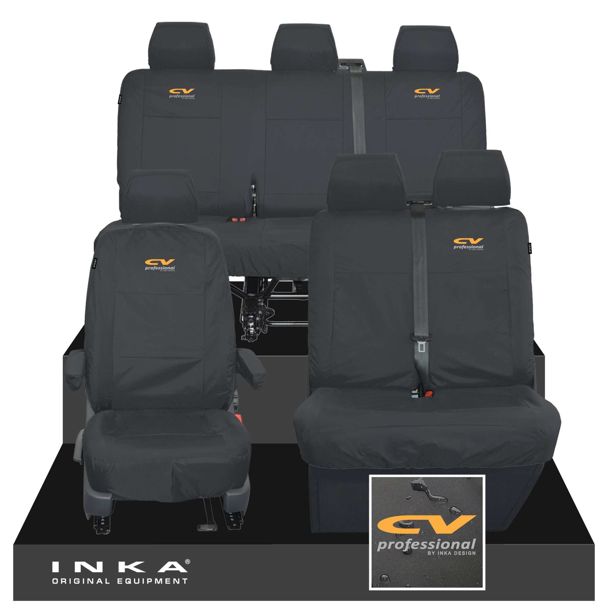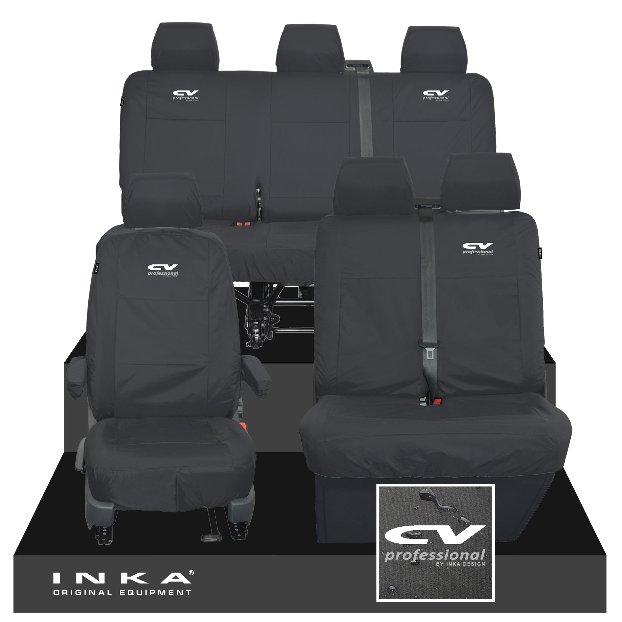 VW Transporter T6.1, T6, T5.1 Front 1+2 & Rear Triple Tailored Waterproof Seat Covers Black MY 10-24