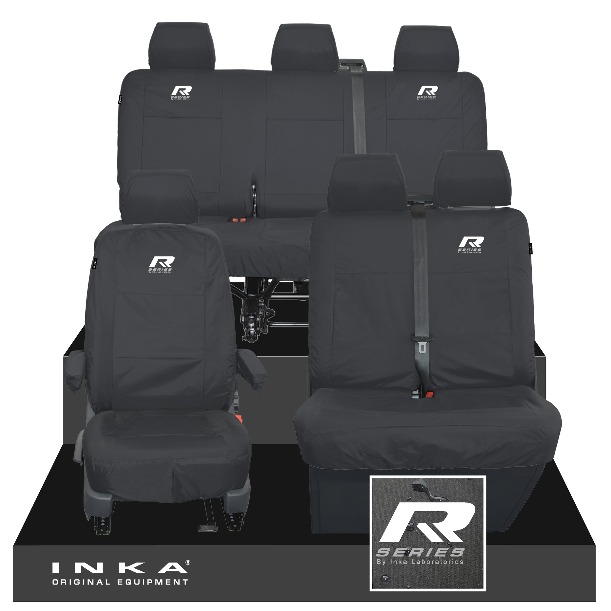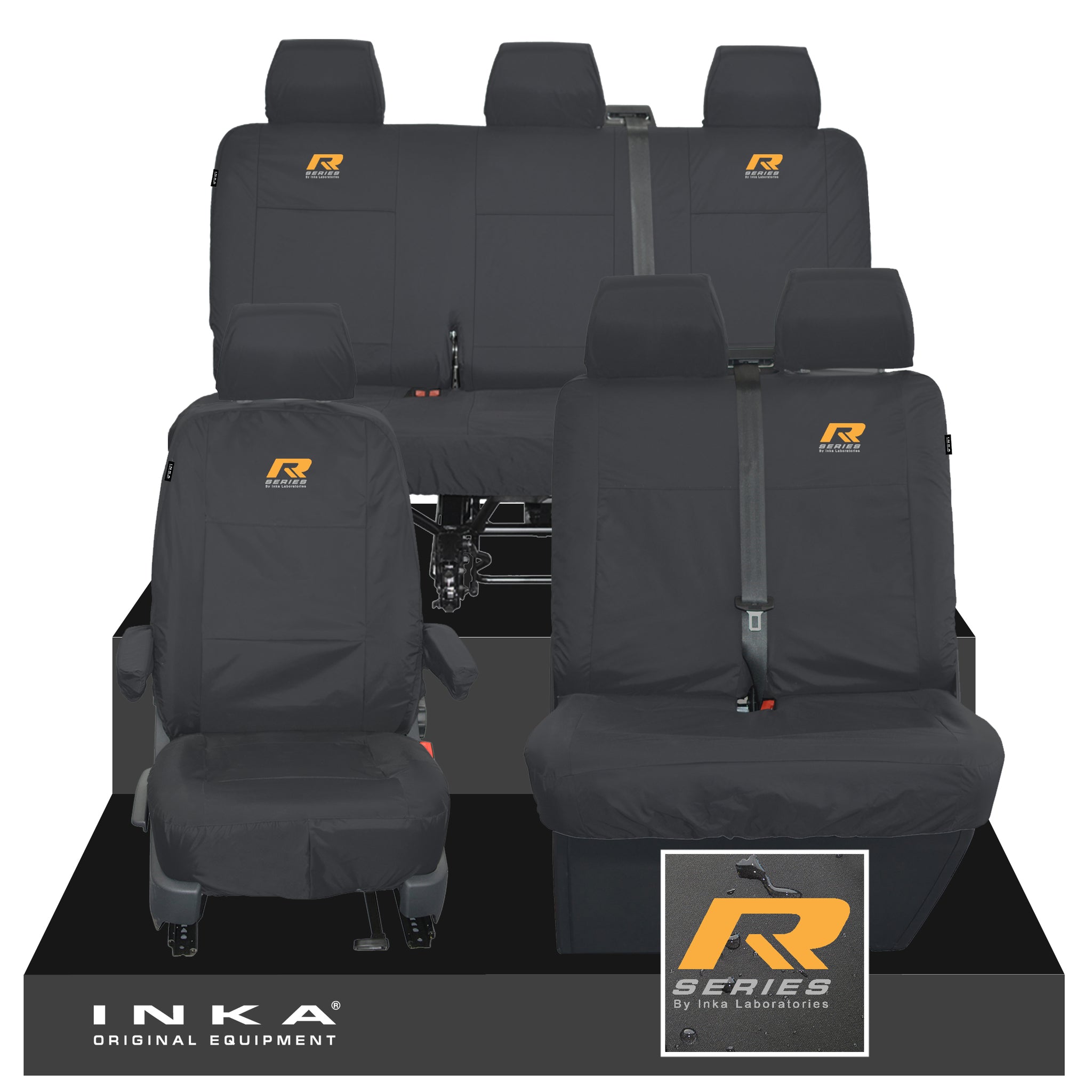 VW Transporter T6.1, T6, T5.1 Front 1+2 & Rear Triple Tailored Waterproof Seat Covers Black MY 10-24