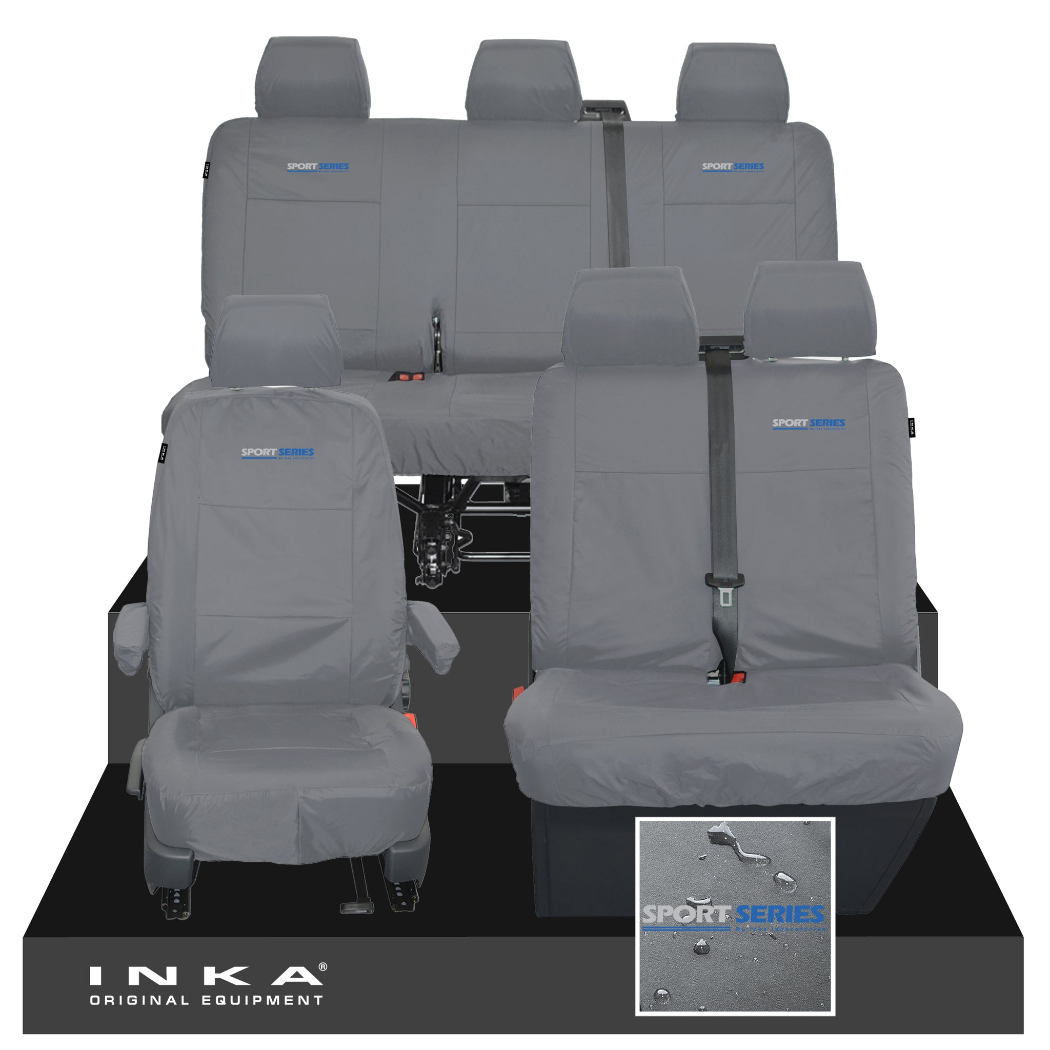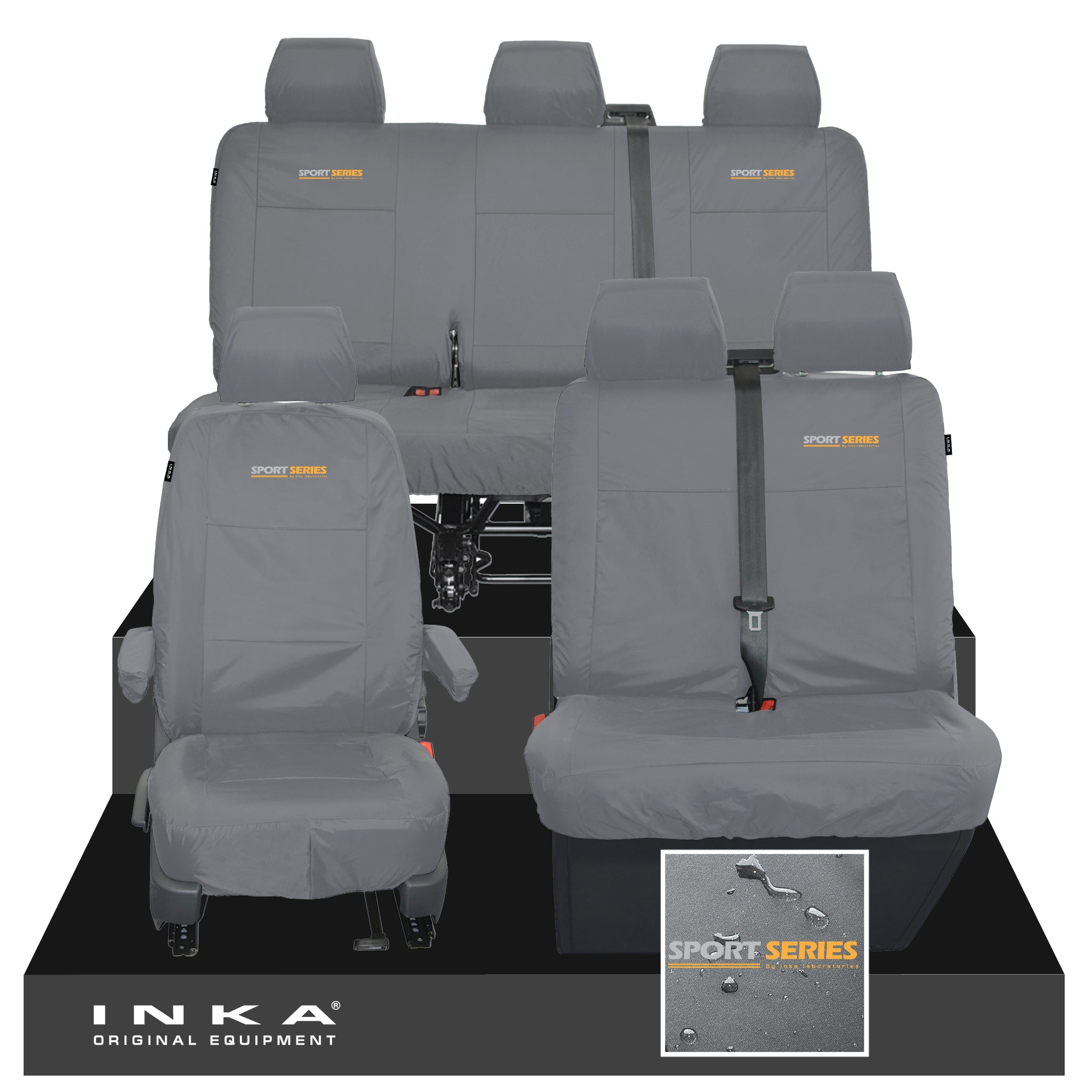VW Transporter T6.1, T6, T5.1 Front 1+2 & Rear Triple Tailored Waterproof Seat Covers Grey MY 10-24