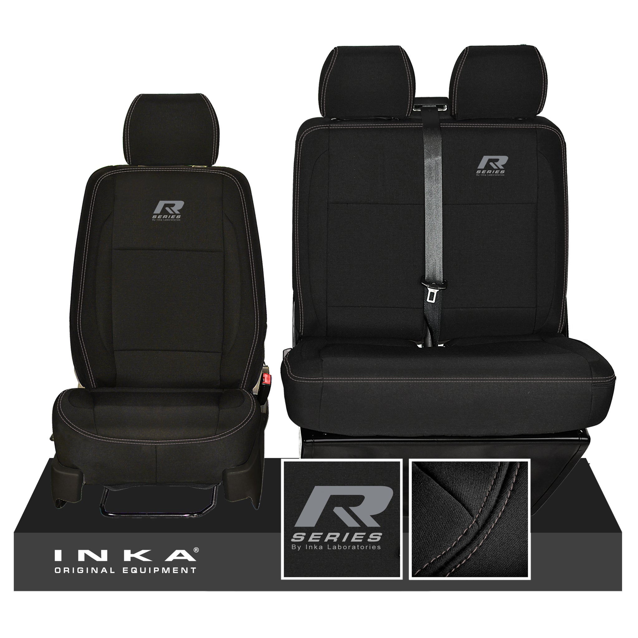 New VW Transporter T6.1, T6, T5.1 R-Series Front 1+2 INKA Heavy Duty Tailored Seat Covers Black Fits Panel Van & Kombi