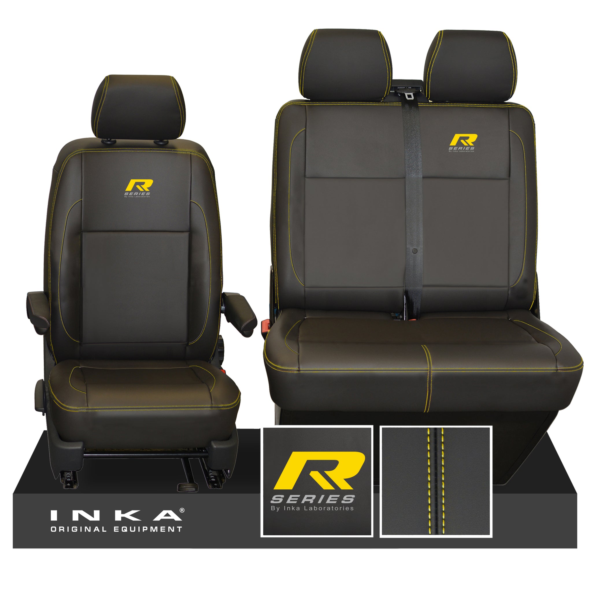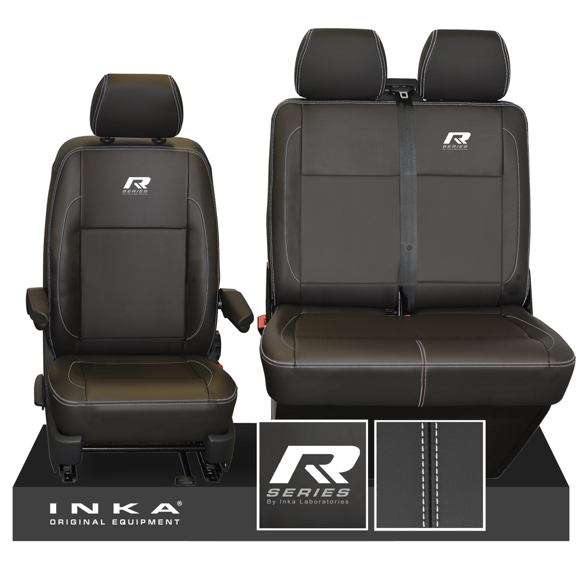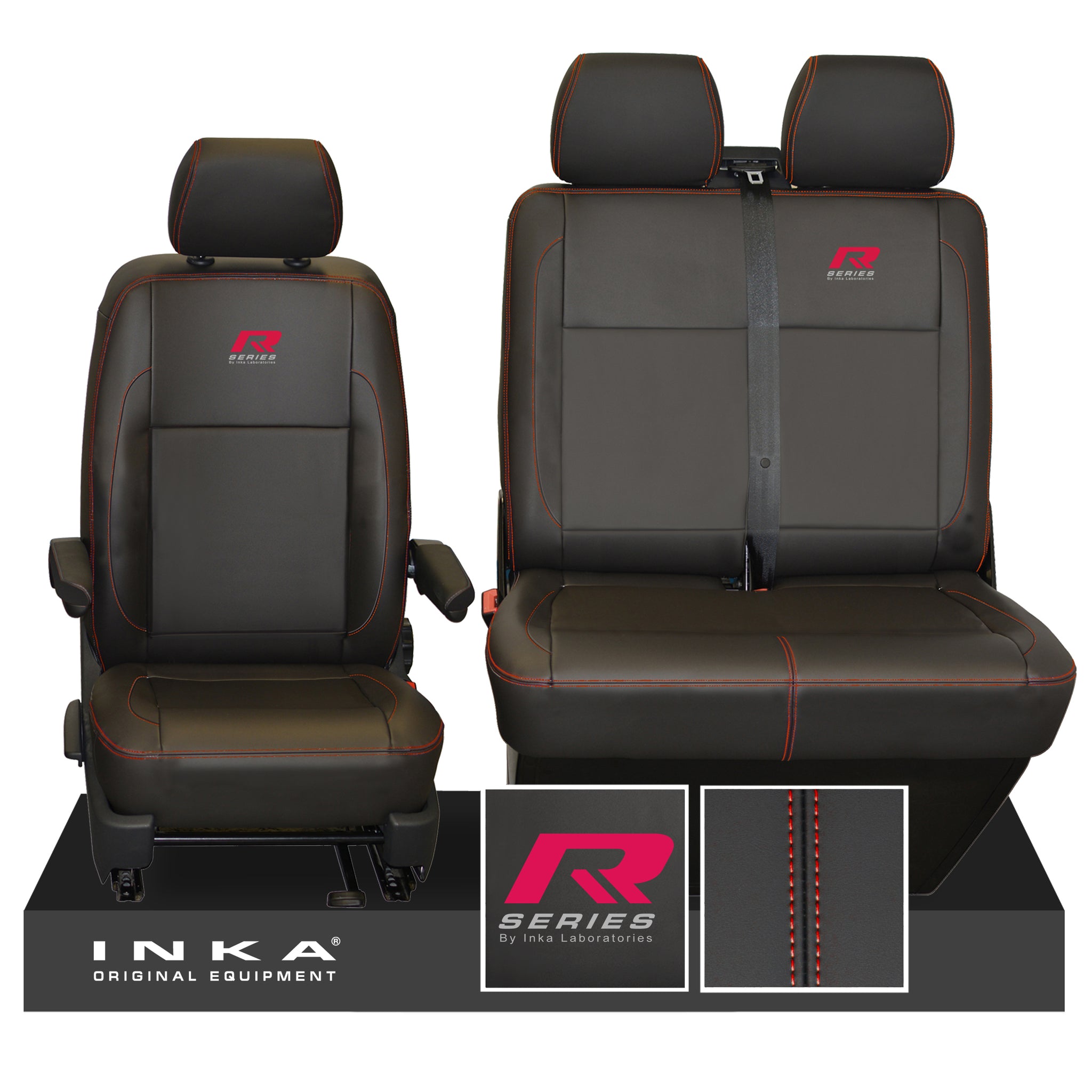VW Transporter T6.1, T6, T5.1 R-Series Front 1+2 INKA Leatherette Tailored Seat Covers Black Fits Panel Van & Kombi